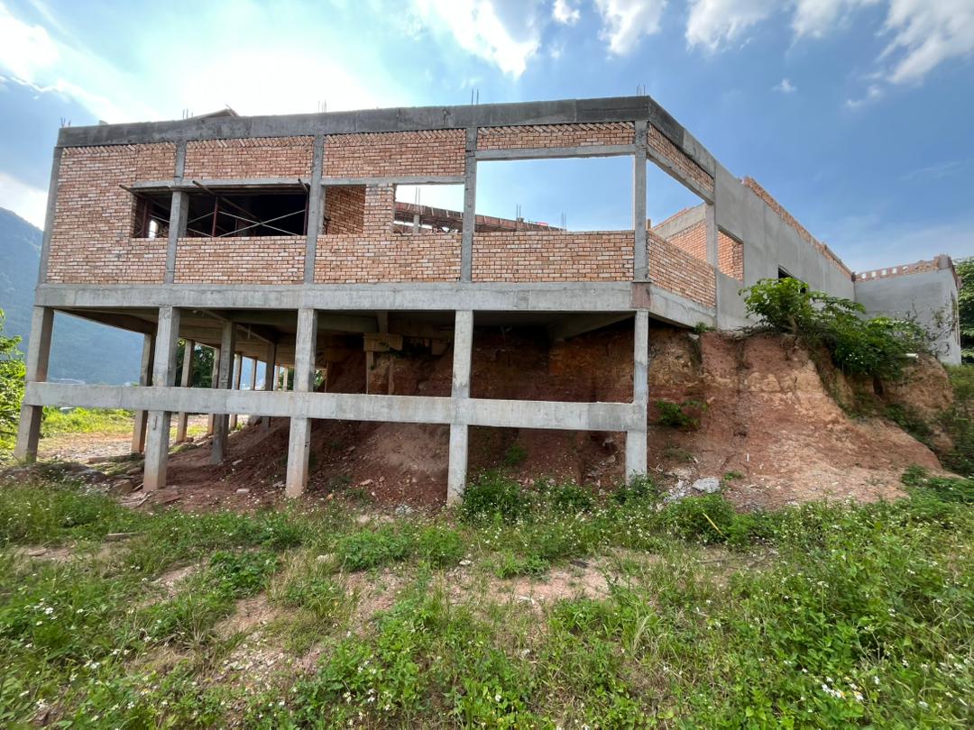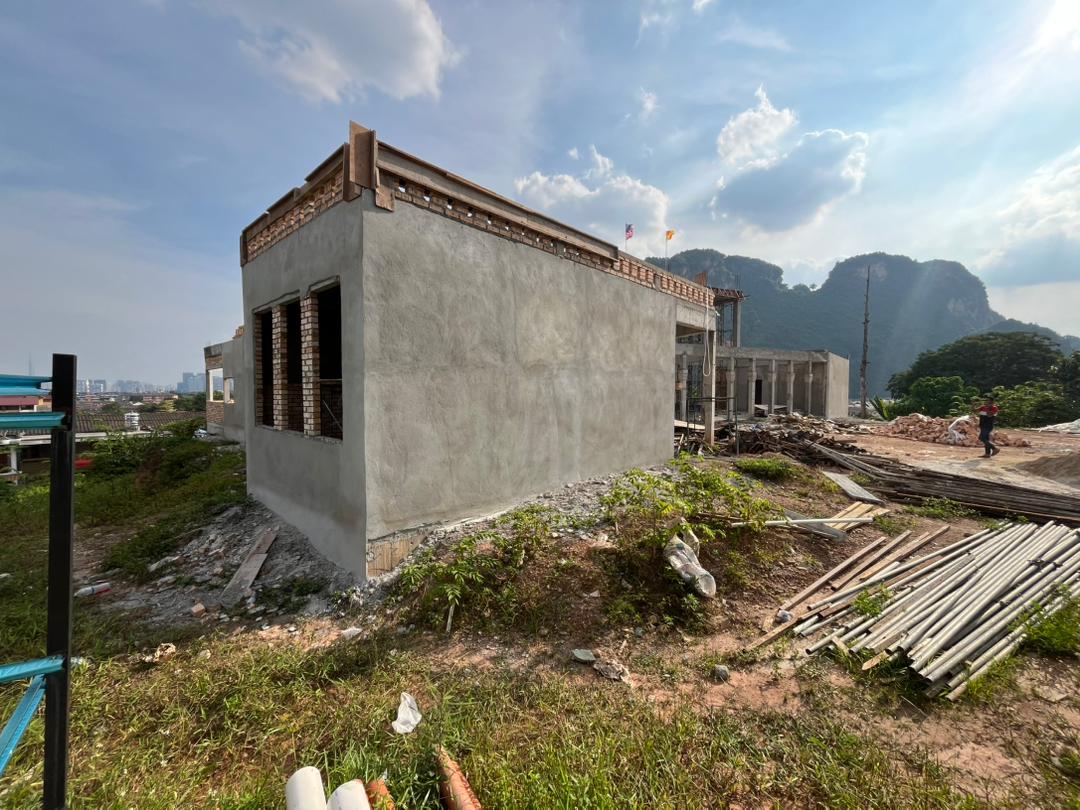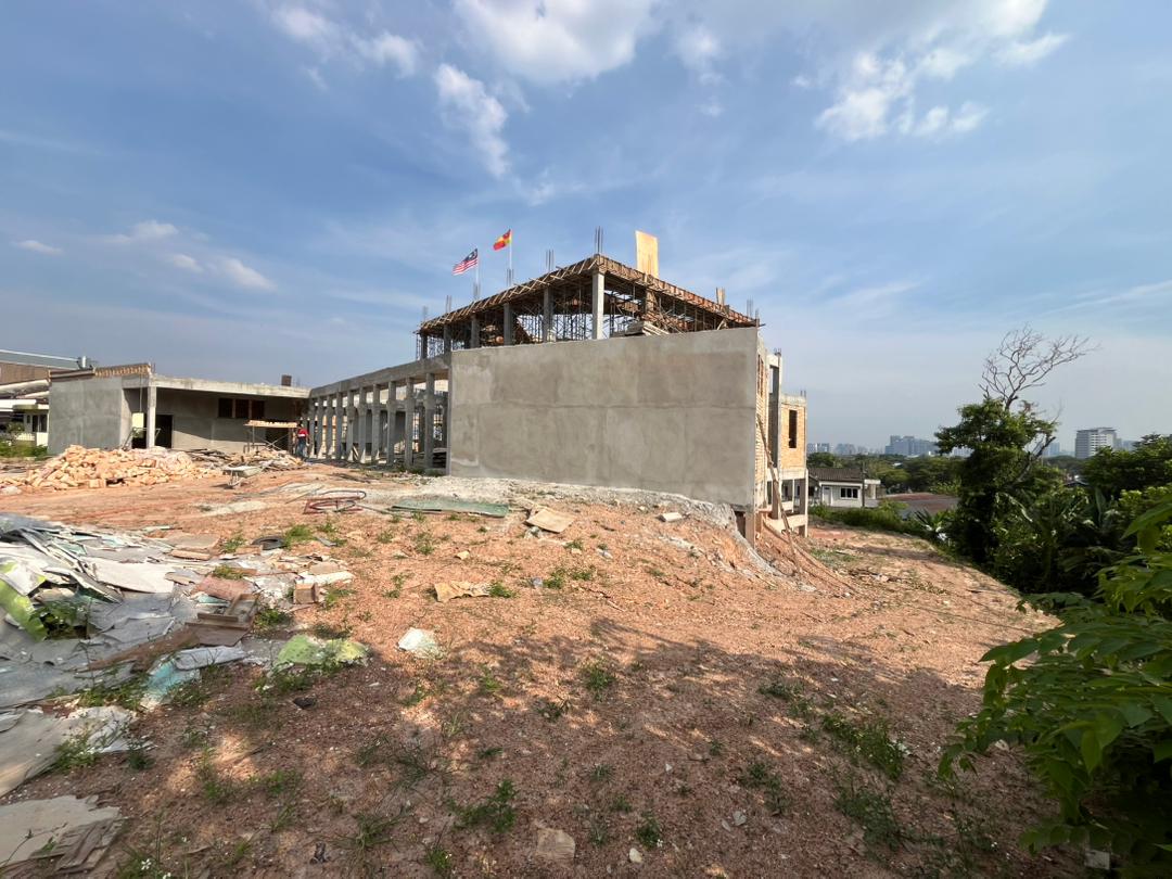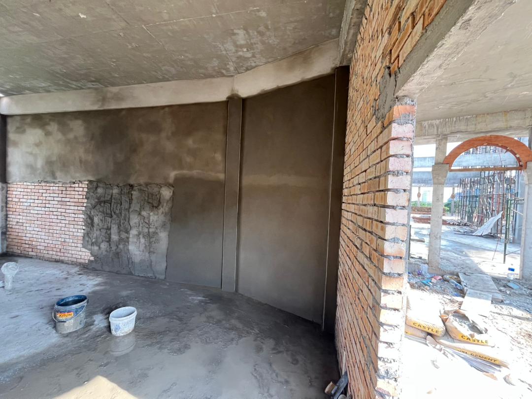 - Lantai yang kelihatan masih dalam keadaan konkrit kasar tanpa kemasan akhir, dan bukan slab lantai baru dibina.