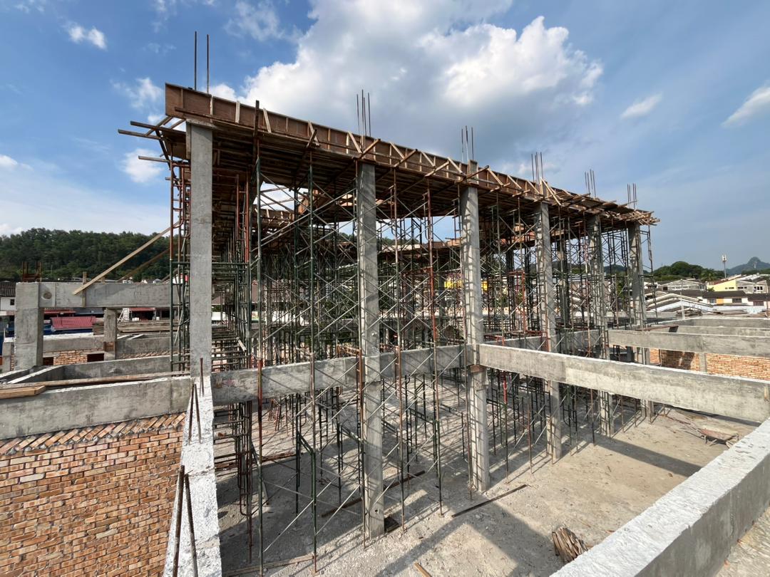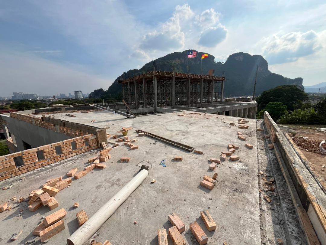 Tapak pembinaan masjid kini berada pada fasa struktur utama, di mana kerja-kerja pembinaan tiang konkrit dan rasuk telah disiapkan sepenuhnya. Perancah logam masih dipasang bagi menyokong struktur slab bumbung yang sedang dibentuk, manakala bahan binaan seperti papan acuan dan kayu disusun di sekitar kawasan kerja. Aktiviti di tapak menunjukkan kemajuan yang tersusun dan teratur, dengan kerja-kerja pembinaan diteruskan mengikut perancangan.