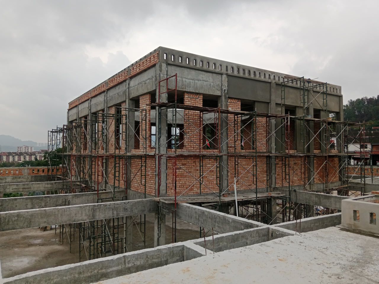 - Binaan dinding bata merah sedang dijalankan sebagai infill wall, bukan RC wall.