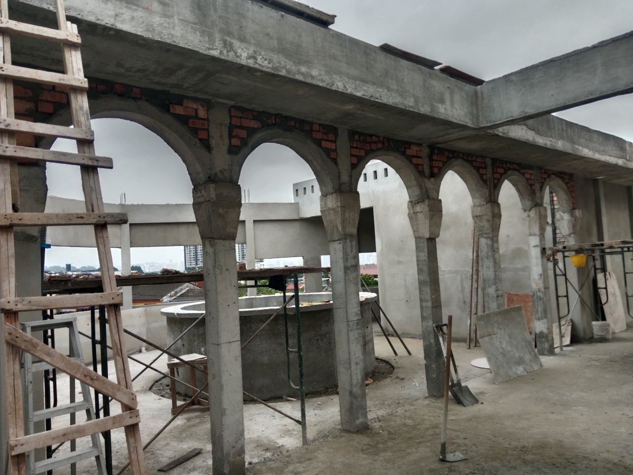 - Lantai yang kelihatan masih dalam keadaan konkrit kasar tanpa kemasan akhir, dan bukan slab lantai baru dibina.