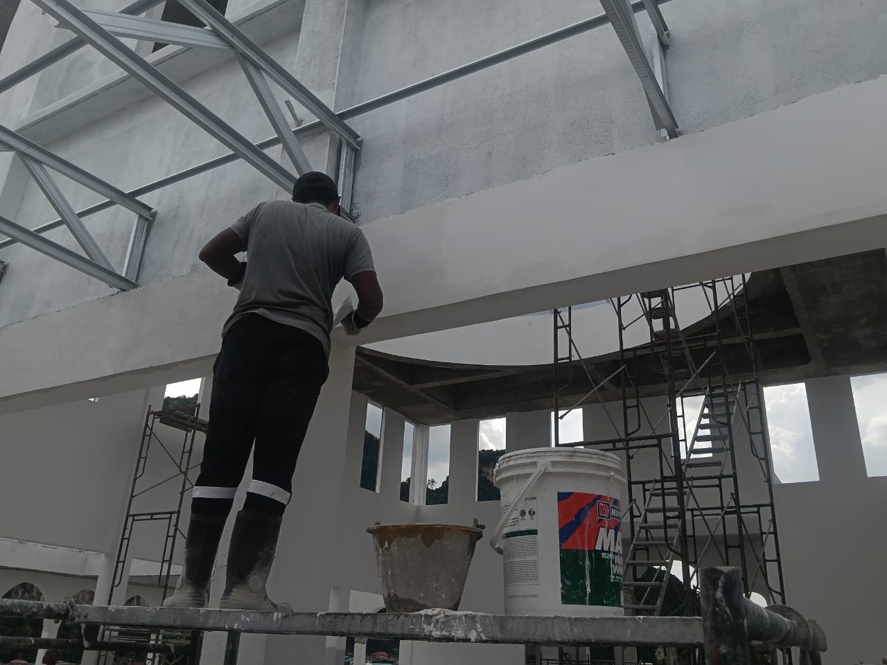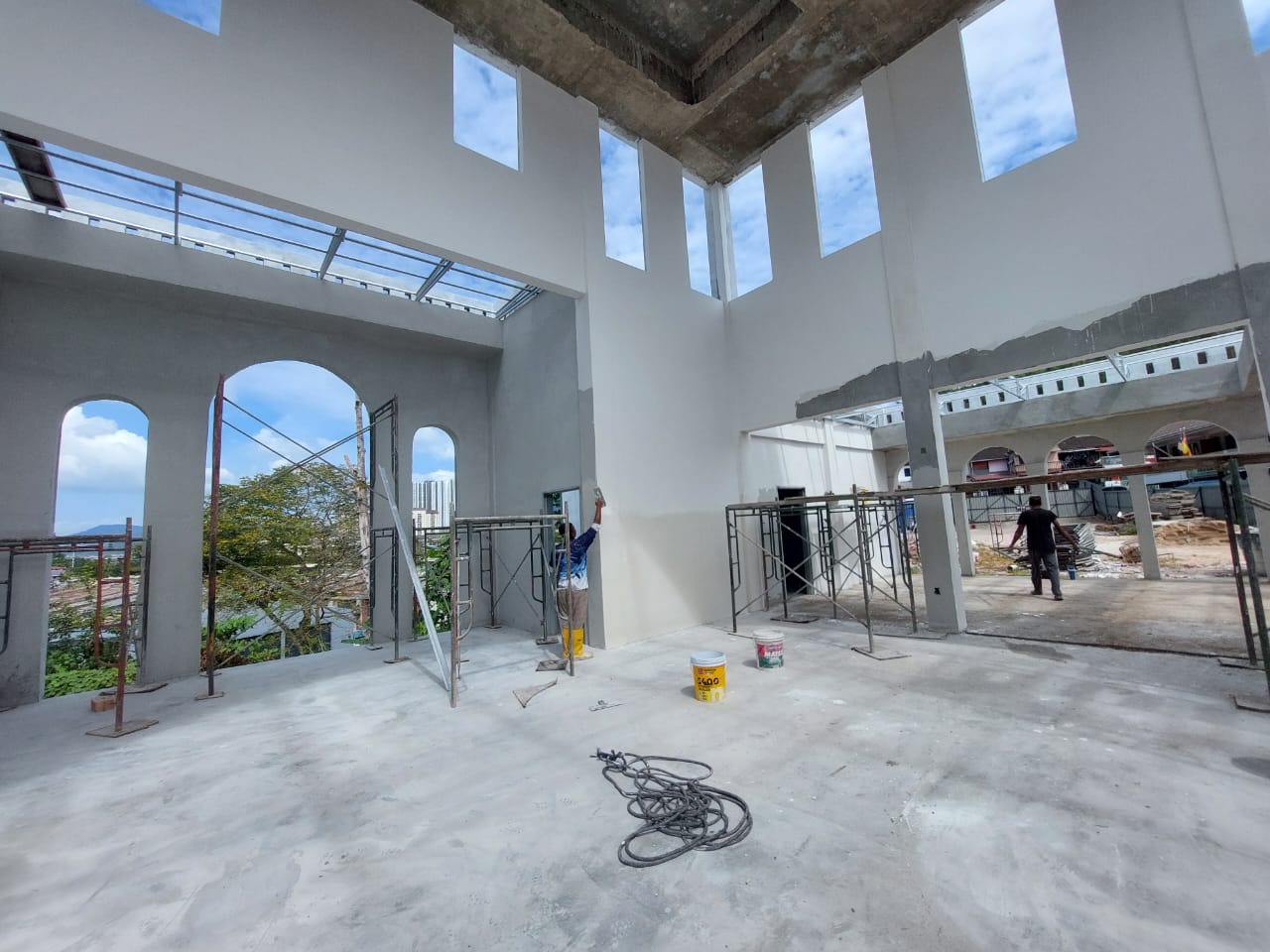 - Kerja kerja skimming dan cat dinding bahagian dalaman.